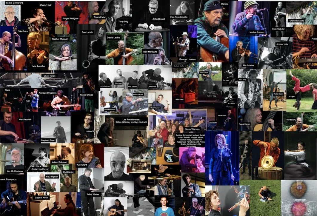 Viv Corringham (voice), Faradena Afifi (viola, drums etc), Marion Treby (piano), Joanne Morrison (voice/movement), Julian Woods (guitar), Maggie Nicols, (voice/tap), Bettina Schroeder (electric ukulele/words), Nicky Smith (voice/movement), Maham Suhail (voice) Gwedolyn Kassenaar (visuals/chalks) and maybe more...