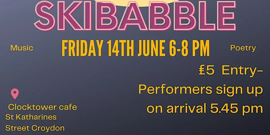 Bettina performs spoken word at SKIBABBLE at Clock Tower Cafe poetry and music night with open mic.